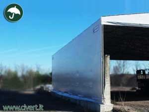 Si tratta di un capannone in PVC largo 16,5 metri, profondo 20 e con un altezza utile di 5, che è stato montato inglobando due muretti prefabbricati dell’altezza di 4 metri.