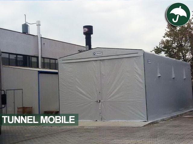 Tra la gamma di colori proposti da Civert per le proprie soluzioni mobili, Eurosirel ha scelto il colore grigio RAL 7035 per il telo pvc del tunnel mobile realizzato.